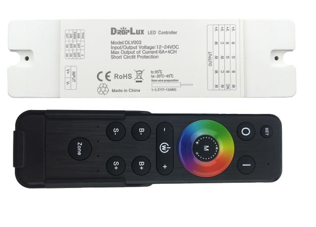 Constant voltage, 4 channels into 6Amp each, a total of 576Watt , all in one controller with RF remote.