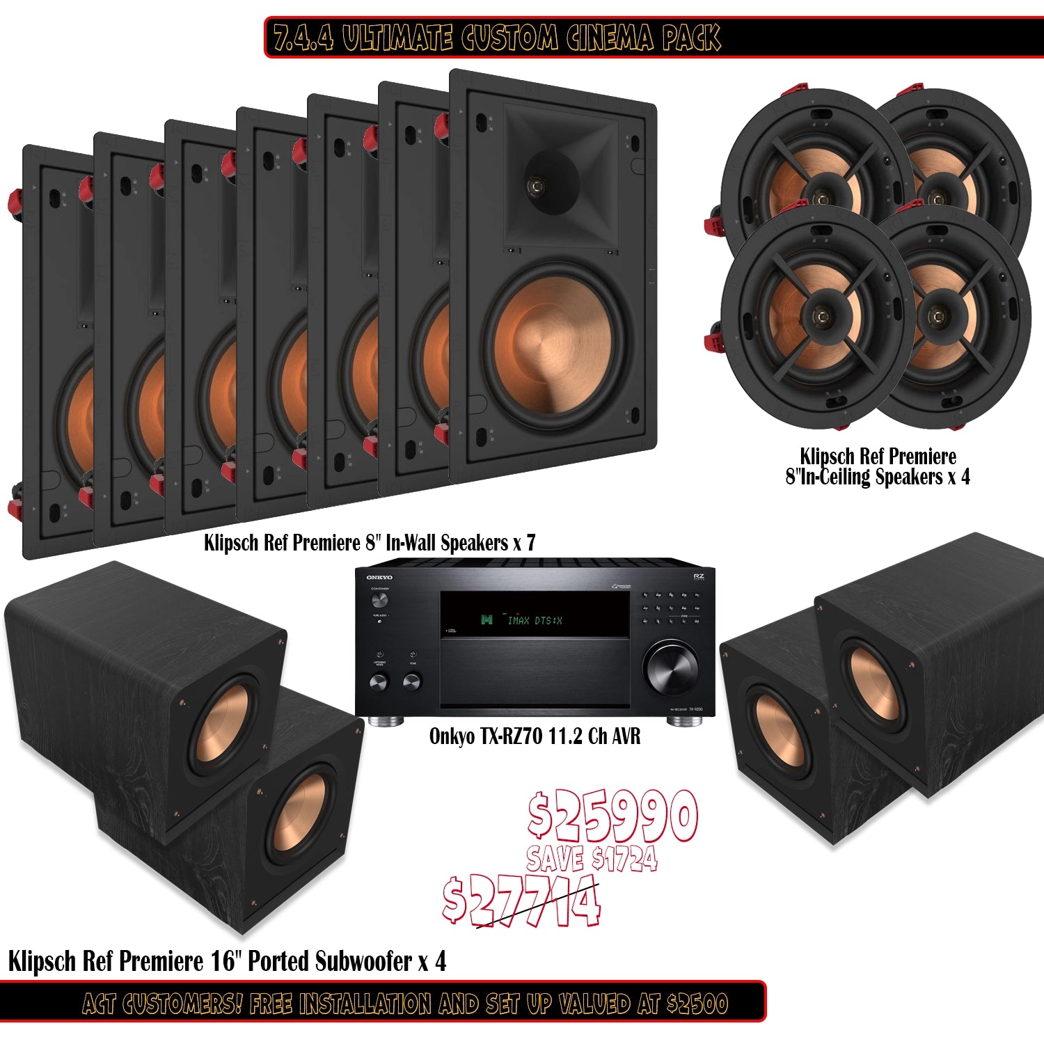 Klipsch Onkyo 7.4.4 Ultimate Custom Cinema Pack